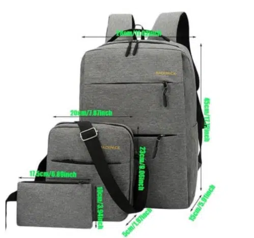 Pack 3 piéces Sac à dos + USB laptop Backpack